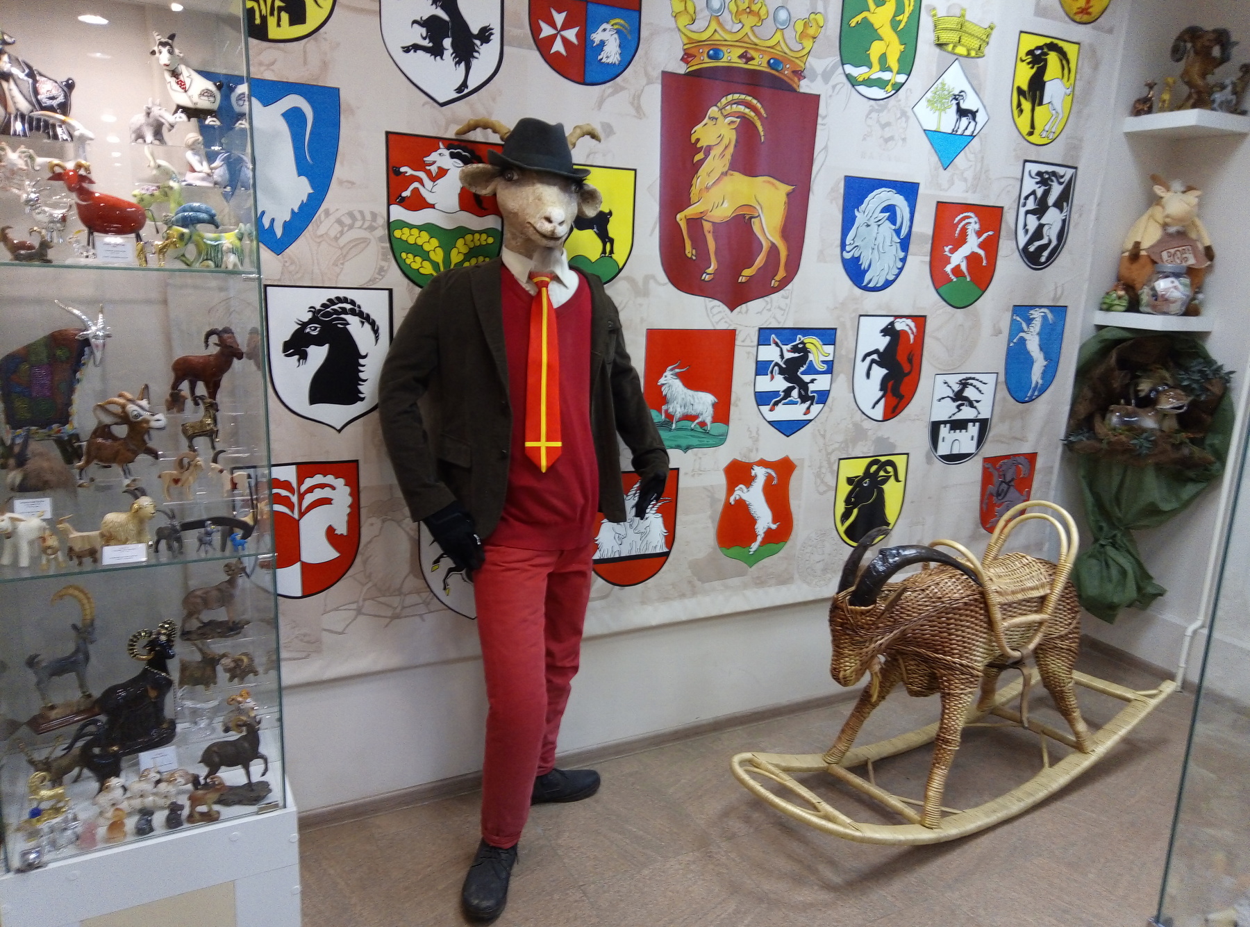 Почему именно Козла? Да потому, что козёл – не просто животное. Это заслуженный символ города, а также неиссякаемый источник для творчества. Тематика музея простирается широко за рамки тверской геральдики и исторических фактов. Вы увидите массу фигурок, флагов, сувениров, символики из отечественных регионов и стран зарубежья, все эти экспонаты так или иначе посвящены Козлам. Кстати, для туристов Козловых, Барановых и Волковых музеем предусмотрены специальные цены!