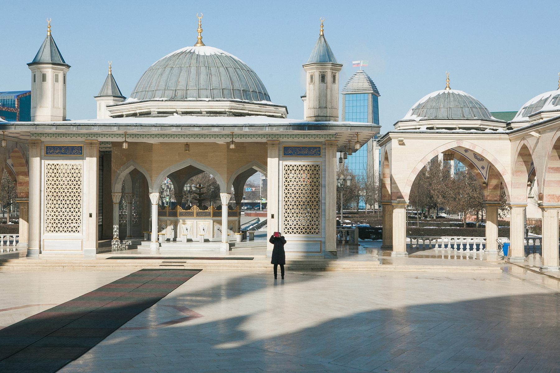 Продолжение экскурсии с посещением мечети «Сердце Чечни»:  наружные и внутренние стены отделаны редчайшим мрамором — травертином, а интерьер обильно декорирован белым мрамором, который добывают на острове Мармара Адасы в Мраморном море. Вы также увидите казачью церковь Архангела Михаила (1868 год).