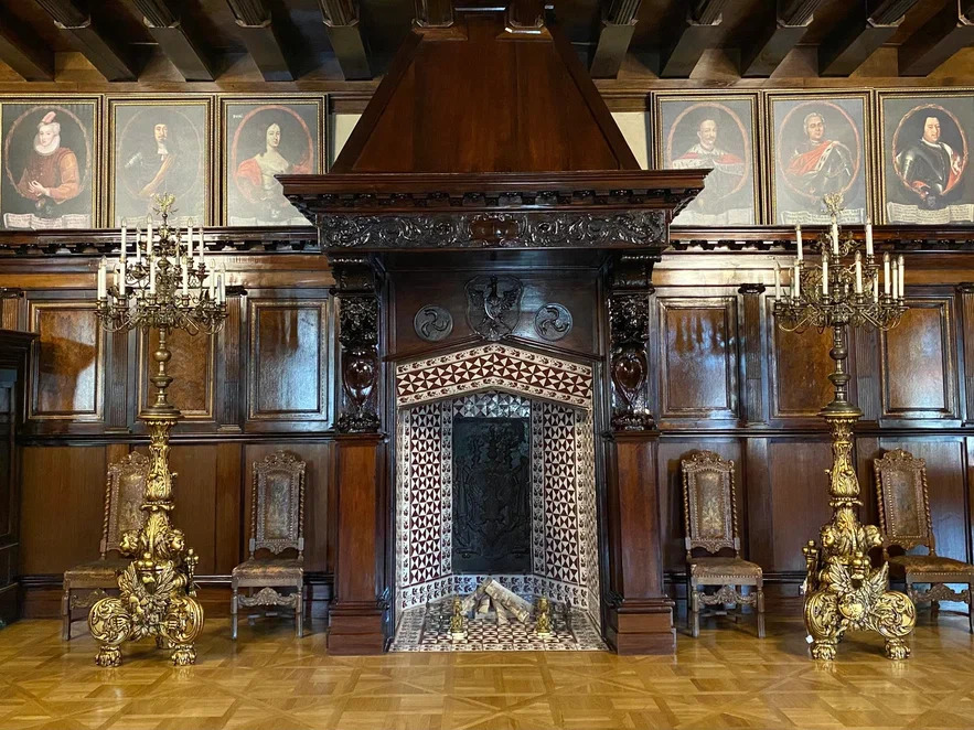 Следующая часть – Театрализованная экскурсия, в которой о замке расскажут исторические персонажи в старинных костюмах. Ожившие обычаи, язык жестов – через наиболее значимые экспонаты Вы узнаете о быте и обычаях княжеского дома Радзивиллов. Основное парадное помещение дворца эпохи Ренессанса – столовая с кессонным потолком и мебелью конца XVI в.Изысканный Портретный зал, утопающий в роскоши рококо, выполнял репрезентативные функции и свидетельствует о древности рода Радзивиллов, его рыцарской и военной славе. А кульминацией экскурсии станет танец князя Кароля Станислова Радзивилла “Пане Коханку” и его жены, княгини Марии Любомирской, в Портретном зале.