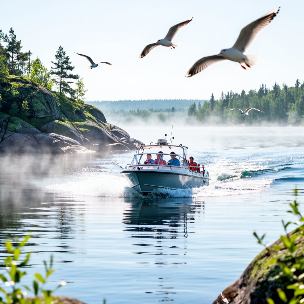 • водная экскурсия по Ладожским шхерам на катерах с высадкой на один из островов: 2100 руб./чел.