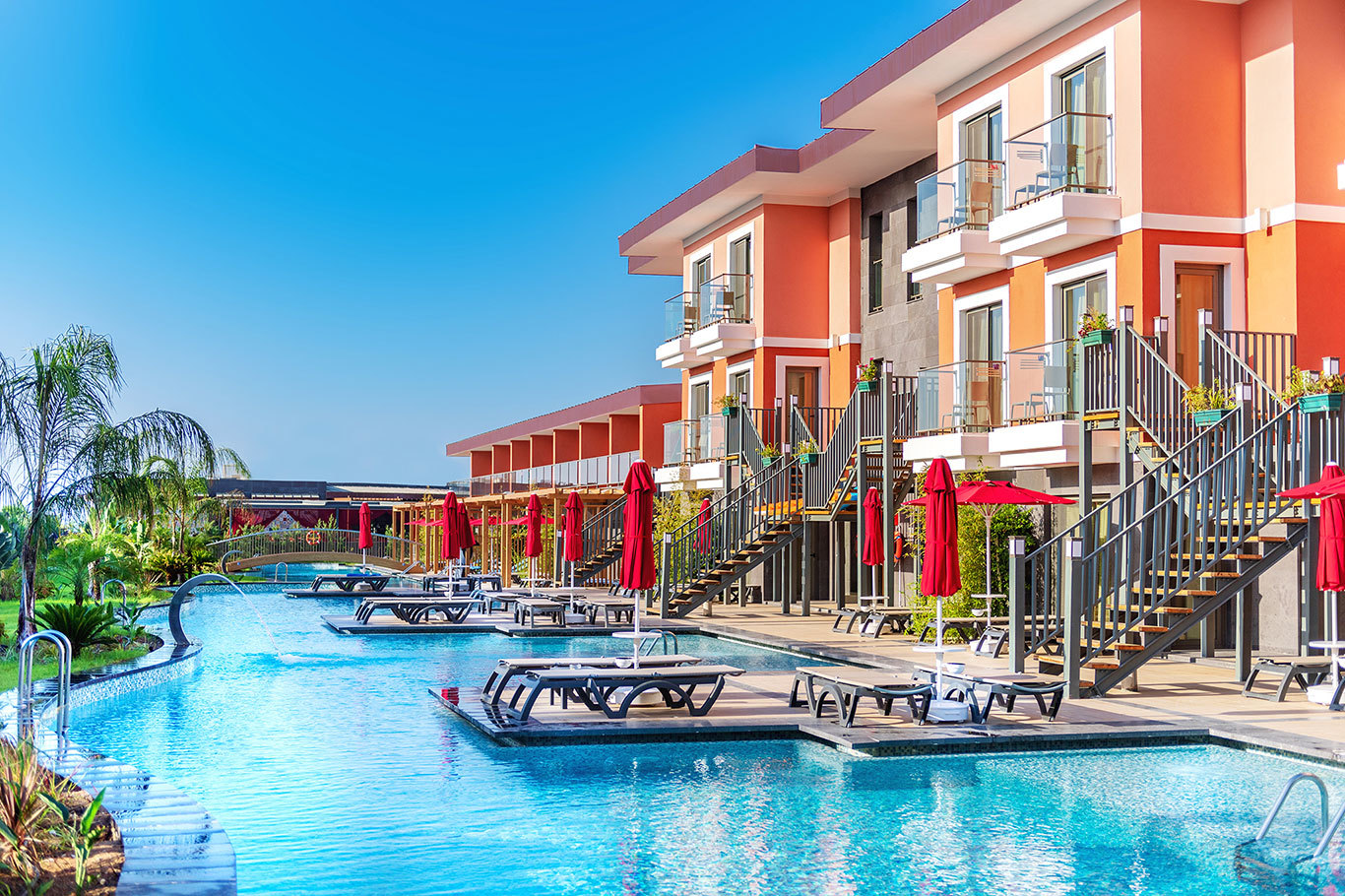 В отеле 5 бассейнов: 4 открытых, 1 крытый (с подогревом)